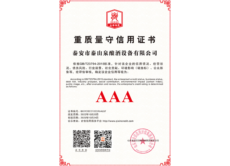 泰安市泰山泉釀酒設(shè)備有限公司,是一家專業(yè)從事釀酒設(shè)備機(jī)械化研發(fā)并集技術(shù)咨詢,工程設(shè)計(jì),制造安裝,人員培訓(xùn)及售后服務(wù)為一體的綜合性企業(yè),本公司主要產(chǎn)品為:大曲清香、小曲清香、大曲醬香、大曲濃香等香型白酒機(jī)械化設(shè)備。  本公司與中國科學(xué)院自動(dòng)化研究所簽訂技術(shù)服務(wù)合同,引進(jìn)先進(jìn)技術(shù),研究生產(chǎn)全自動(dòng)化機(jī)械釀酒設(shè)備,由中國科學(xué)自動(dòng)化研究所的技術(shù)支持,打造最先進(jìn)的生產(chǎn)釀酒設(shè)備,公司有信心打造全國最先進(jìn)白酒...